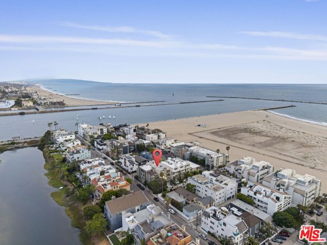 Spectacular main channel and ocean view townhome just seconds away from the sand on a quiet Marina del Rey "walk street". Located in an exclusive two-unit building, this light-filled 3-story contemporary residence offers 3 bedrooms and 3.5 baths, including a loft-style den/office as the third bedroom. Soaring ceilings and abundant natural light elevate the main living area, while the open-concept kitchen set above the living space features Viking appliances, soapstone counters, and maple cabinetry. A private elevator from the lobby opens directly into the main living and dining level. Internal stairs connect to the loft, elevated kitchen, and lower bedroom floors, creating ideal separation for live/work lifestyles and entertaining. The spacious primary suite includes a fireplace, spa tub, dual vanity, and private balcony. The junior suite also enjoys a private spa-style bath and ample closet space. Additional highlights include bamboo flooring, built-in sound system, Phantom screens, generous storage, and two shared guest parking spaces. The cooperative, self-managed HOA emphasizes shared responsibility and collaboration between both unit owners.
